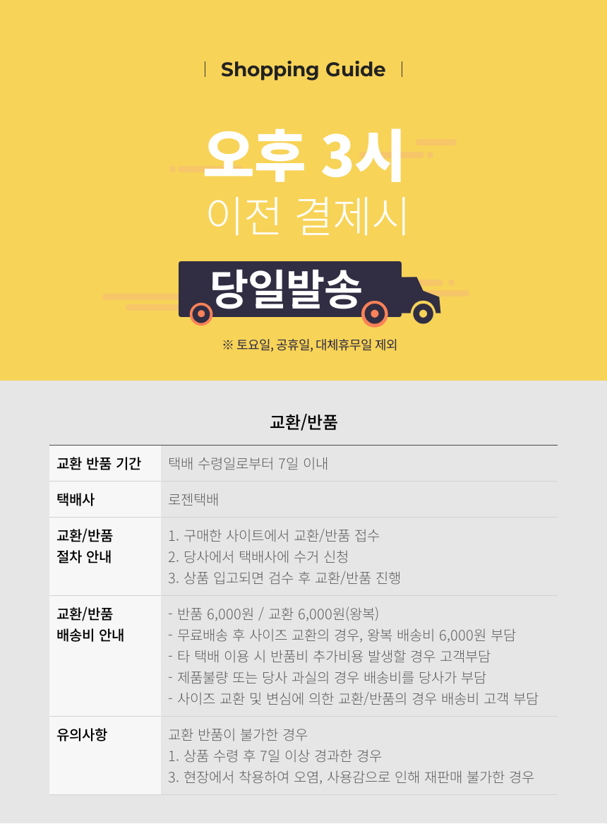 ※ 고객님의 마음이 바뀌어 교환, 반품을 하실 경우 상품반송 비용은 고객님께서 부담하셔야 합니다.